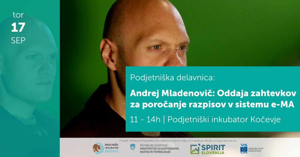 Predavatelj: Andrej Mladenovič je zaposlen na podjetniškem inkubatorju Kočevje. Vodil ali sodeloval je pri številnih projektih. Bil je med prvimi uporabniki eMa sistema in ga uporablja od samega začetka. Skozi projekte se je naučili številne "trike", kako pripraviti zahtevke in si olajšati pravilno oddajo.
