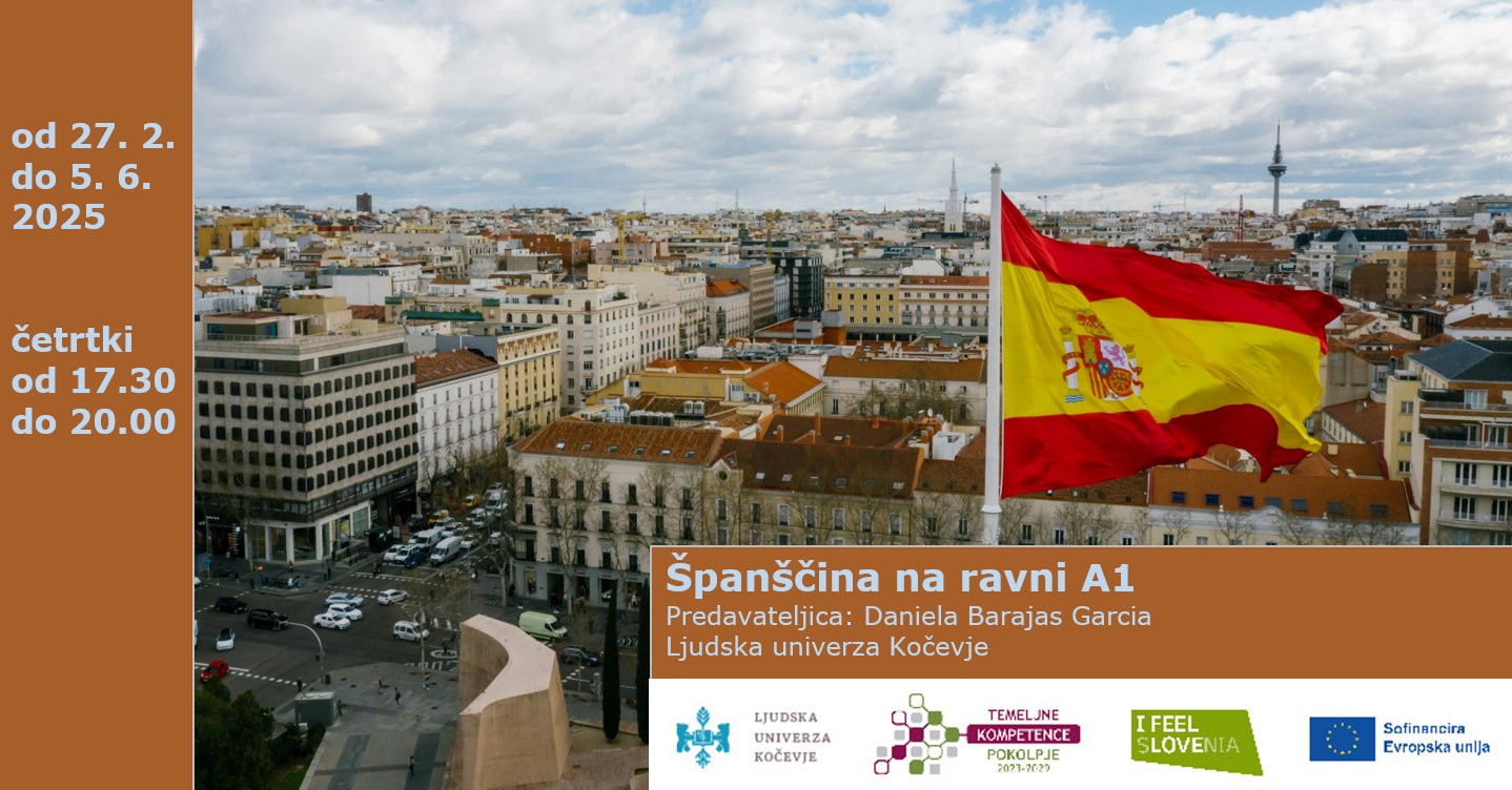 Ljudska univerza Kočevje organizira začetni tečaj španskega jezika v obsegu 40 ur. Tečaj bo potekal enkrat tedensko (ob četrtkih) po tri šolske ure (od 17.30 do 20.00). Tečaj španskega jezika na ravni A1 je namenjen usvajanju jezikovnega znanja španščine za sporazumevanje v vsakodnevnih situacijah. Namenjen je pridobivanju jezikovnega znanja za pripovedovanje o sedanjih dogodkih z uporabo osnovnih časov in glagolov.