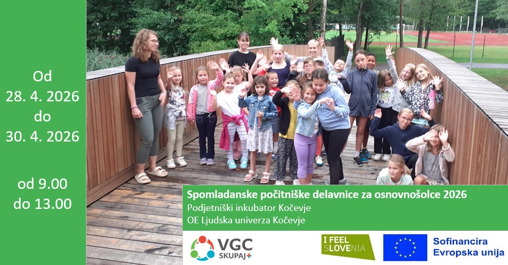 Športne in ustvarjalne delavnice so namenjene otrokom od 6. do 12. leta, potekale bodo od 28. 4. do 30. 4. 2026, od 9. do 13. ure.