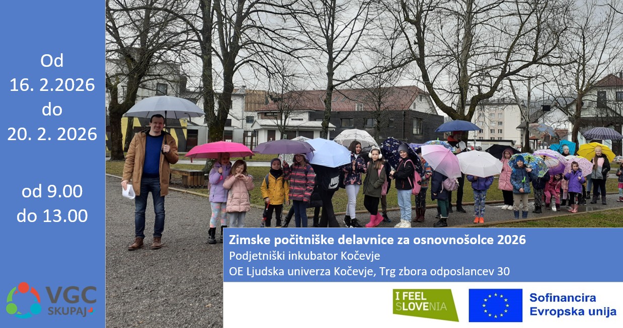 Športne in ustvarjalne delavnice so namenjene otrokom od 6. do 12. leta, potekale bodo od 16. 2. do 20. 2. 2026, od 9. do 13. ure.